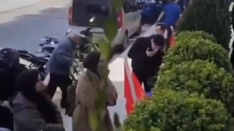 Restorana giren müşterilere seslenen grup, “Sizin hiç mi vicdanınız yok! Nasıl burada oturursunuz? Parasını ben vereyim, başka yerde yiyin…” diyerek tepkilerini dile getirdi.