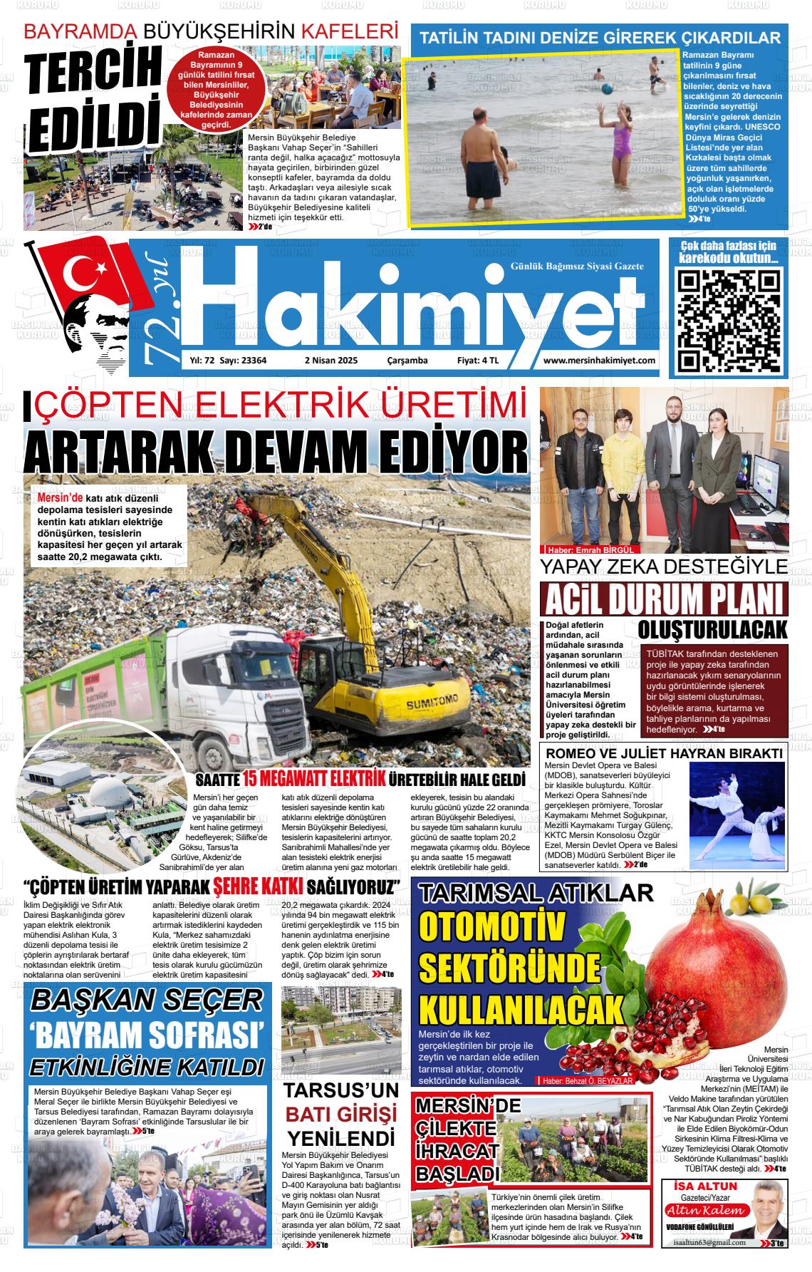Mersin Gazete Manşetleri Adana Adıyaman Afyon Ağrı Aksaray Amasya Antalya Ardahan Artvin Aydın Balıkesir Bartın Batman Bayburt Bilecik Bingöl Bitlis Bolu Burdur Bursa Çanakkale Çankırı Çorum Denizli Diyarbakır Düzce Edirne Elazığ Erzincan Erzurum Eskişehir Gaziantep Giresun Gümüşhane Hakkari Hatay Iğdır Isparta İstanbul İzmir Kahramanmaraş Karabük Karaman Kars Kastamonu Kayseri Kırıkkale Kırşehir Kilis Kocaeli Konya Kütahya Malatya Manisa Mardin Mersin Muğla Muş Nevşehir Niğde Ordu Osmaniye Rize Adapazarı Samsun Siirt Sinop Sivas Şanlıurfa Şırnak Tekirdağ Tokat Trabzon Tunceli Uşak Van Yalova Yozgat Zonguldak Kütahya Ankara