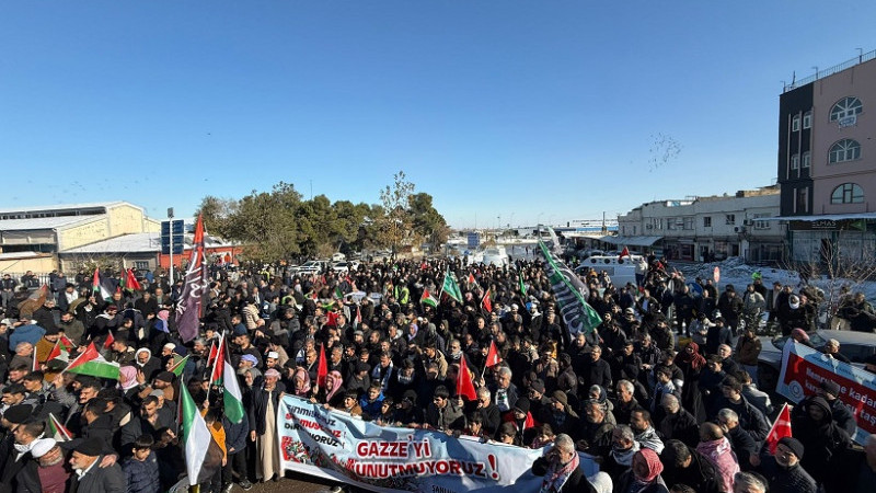 Gıyabi cenaze namazının ardından başlayan yürüyüşte, katılımcılar buz tutmuş yollara rağmen kararlı adımlarla Harran Kapı’ya kadar ilerledi. Ellerinde bayraklar, dillerinde Gazze lehine sloganlarla soğuğa meydan okuyan kalabalık, Filistin meselesinin sadece bir bölgenin değil, tüm insanlığın ortak sancısı olduğunu bir kez daha hatırlattı.